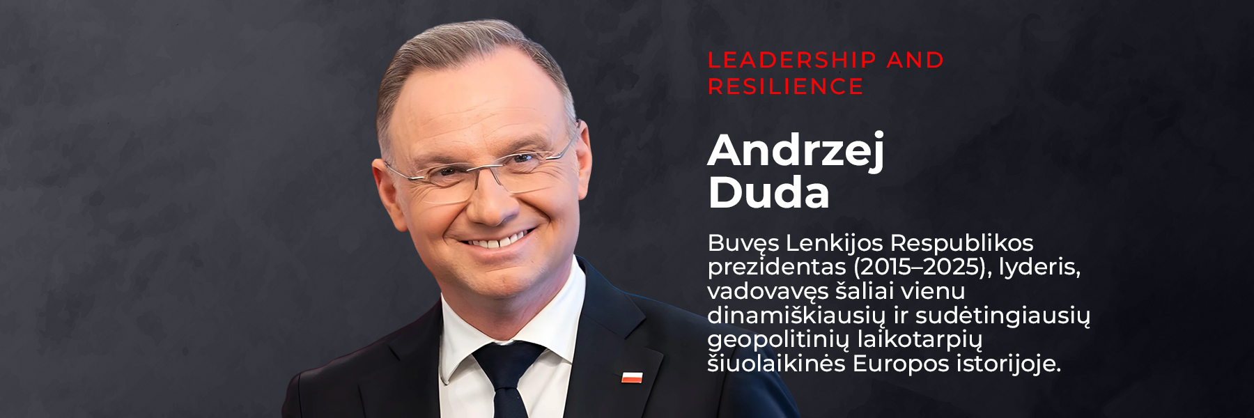 EBIT scenoje prezidentas Andrzej Duda dalinsis vertinga dešimtmečio vadovavimo šaliai patirtimi, atskleisdamas, kaip stiprinti valstybės ir organizacijų atsparumą, lyderystę, išsaugoti vertybes bei kurti tvarius bendradarbiavimo tiltus tarp verslo, valdžios ir tarptautinių partnerių. Tai retas šansas išgirsti aukščiausio lygio vadovavimo pamokas, pritaikomas sudėtingose situacijose.